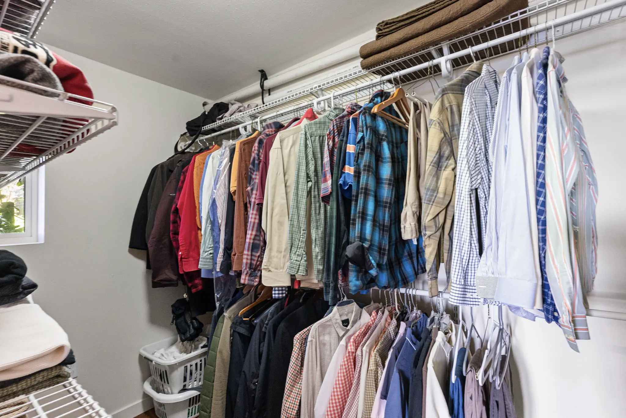 The primary suite is a true retreat, featuring a spacious walk-in closet, a bath with glass-enclosed shower and deck access. A second full bath with tub/shower combo and a utility room with adjustable shelving and stackable washer/dryer round out the main level.