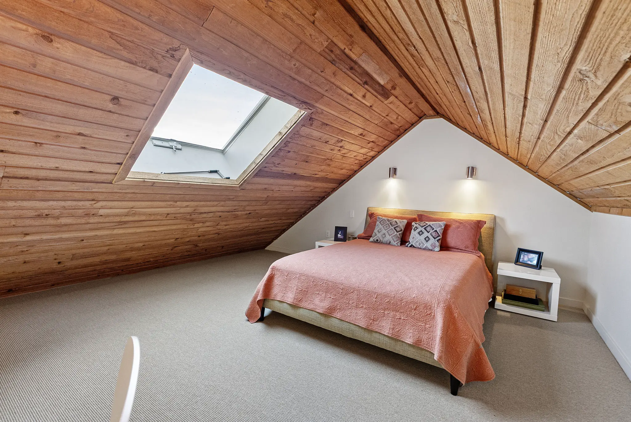 A cozy lofted second bedroom, accessed by a library ladder and bathed in natural light, adds flexibility for guests or a creative workspace. Additional highlights include an energy-efficient radiant heat and hot water system, an attached carport with utility and attic storage and a bulkhead at the water rebuilt with permits in 2022. The furniture and rugs are included in the sale.